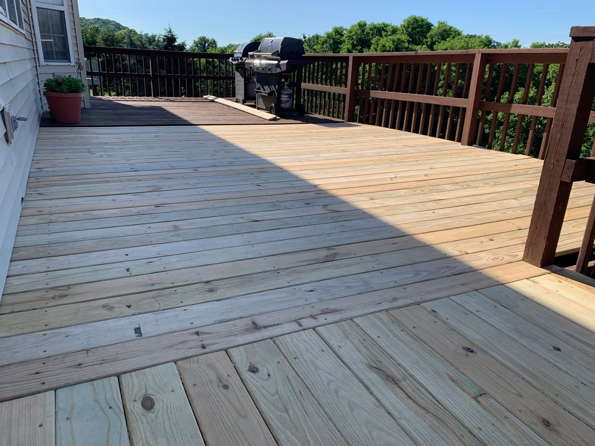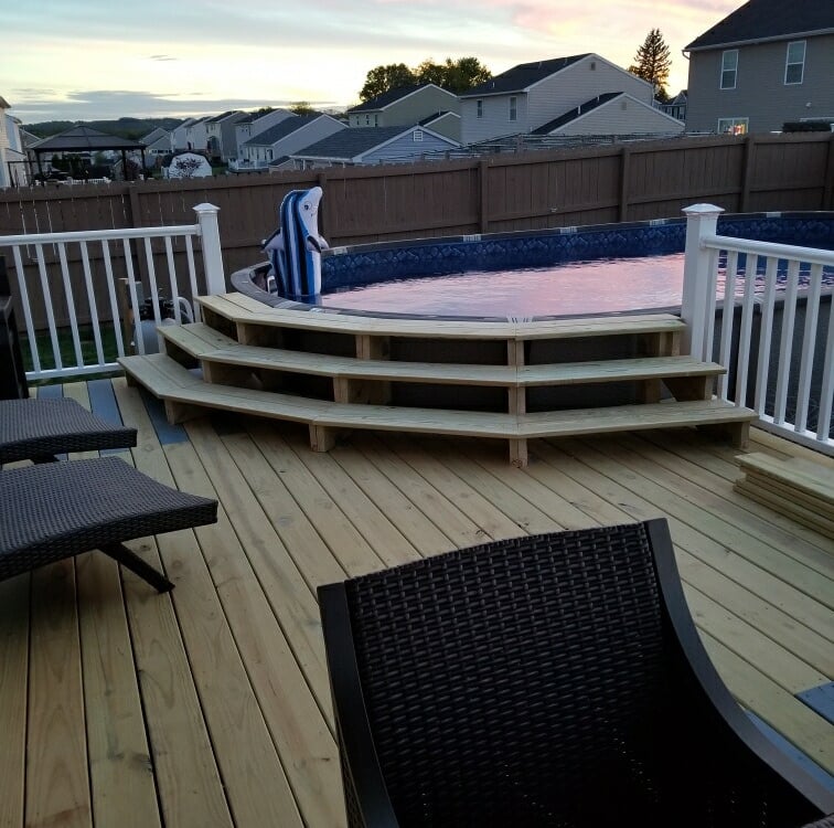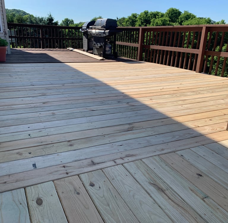 Staining: Consider staining the deck if you want to enhance the wood's natural color or change its appearance. Stains can also provide additional protection against the elements. We recommend using Valspar or Sherwin Williams brand products for the best results and longest lasting finish.